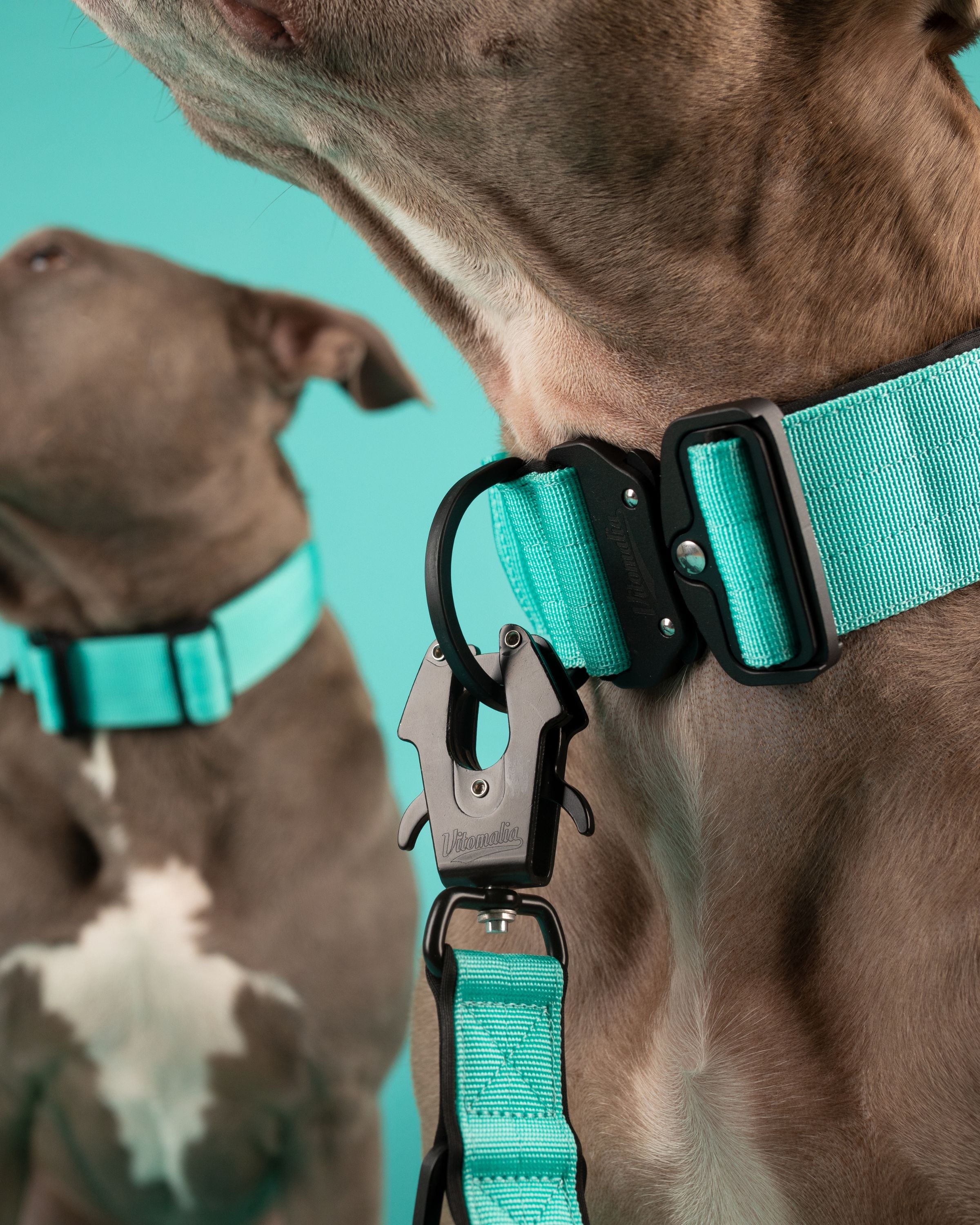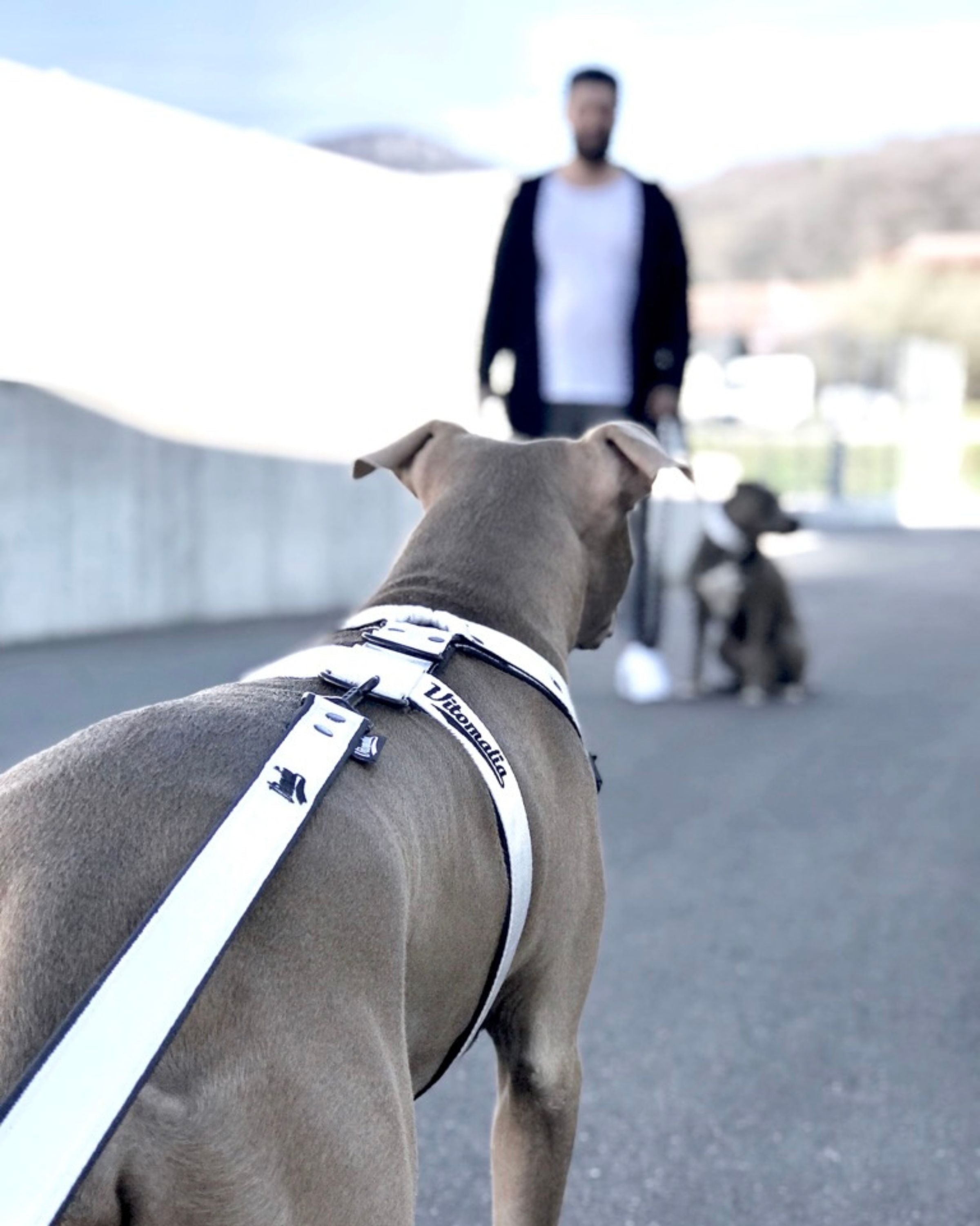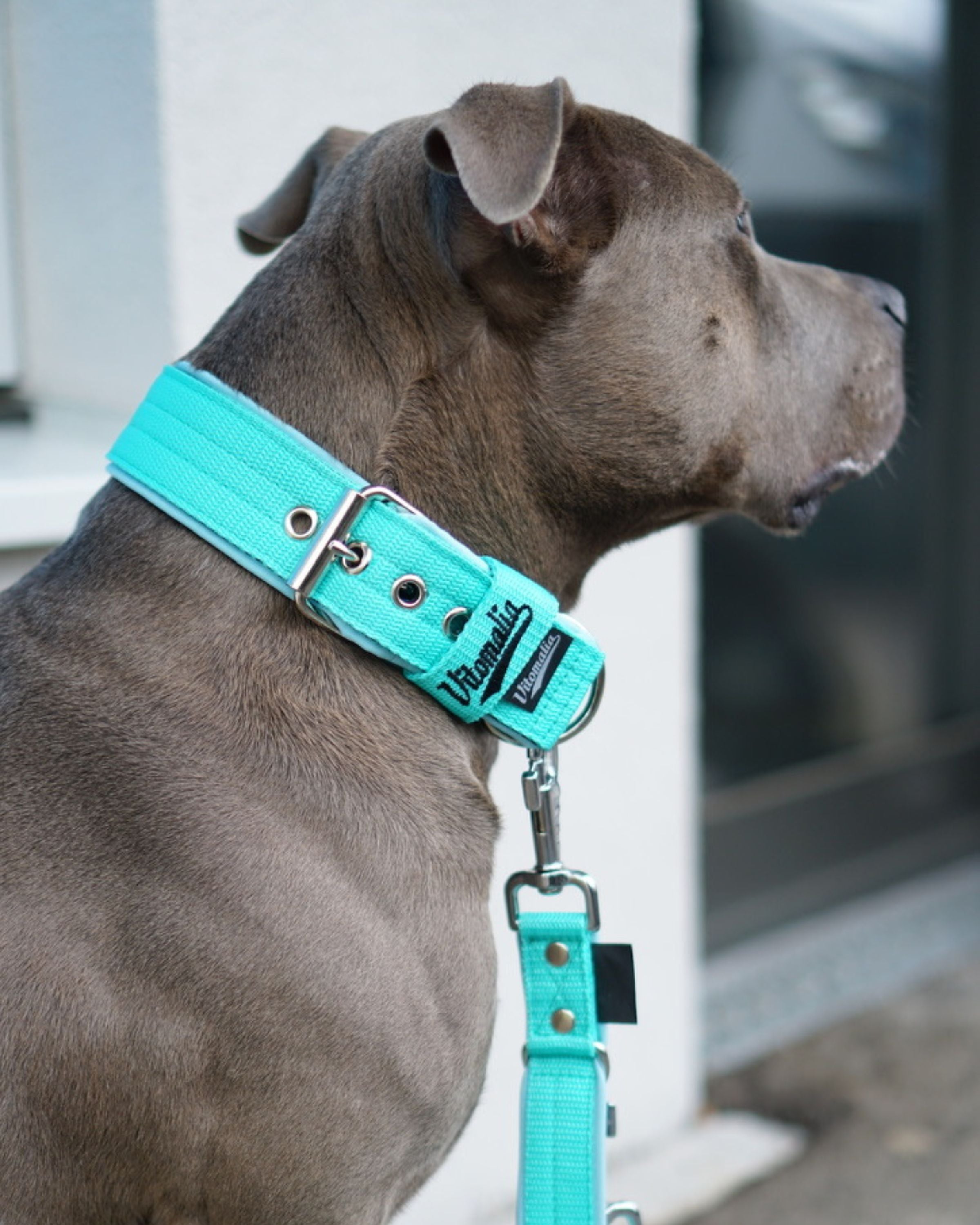 In July 2016, we moved the centre of our lives to Switzerland - together with Vito and Amalia. A courageous step that changed many things. But one thing remained the same: the daily challenges with two special dogs. We looked for functional accessories that combined safety, comfort and quality. But we found nothing. Our dogs with short, sensitive coats in particular suffered from classic collars. Pressure points, skin irritation, material failure. So we started sewing them ourselves. Our first idea was a wide Collar with a protruding, soft inner lining - to protect the sensitive neck. Without realising that this detail would become Vitomalia's trademark. What started out as a solution for our dogs became the design standard - to this day.