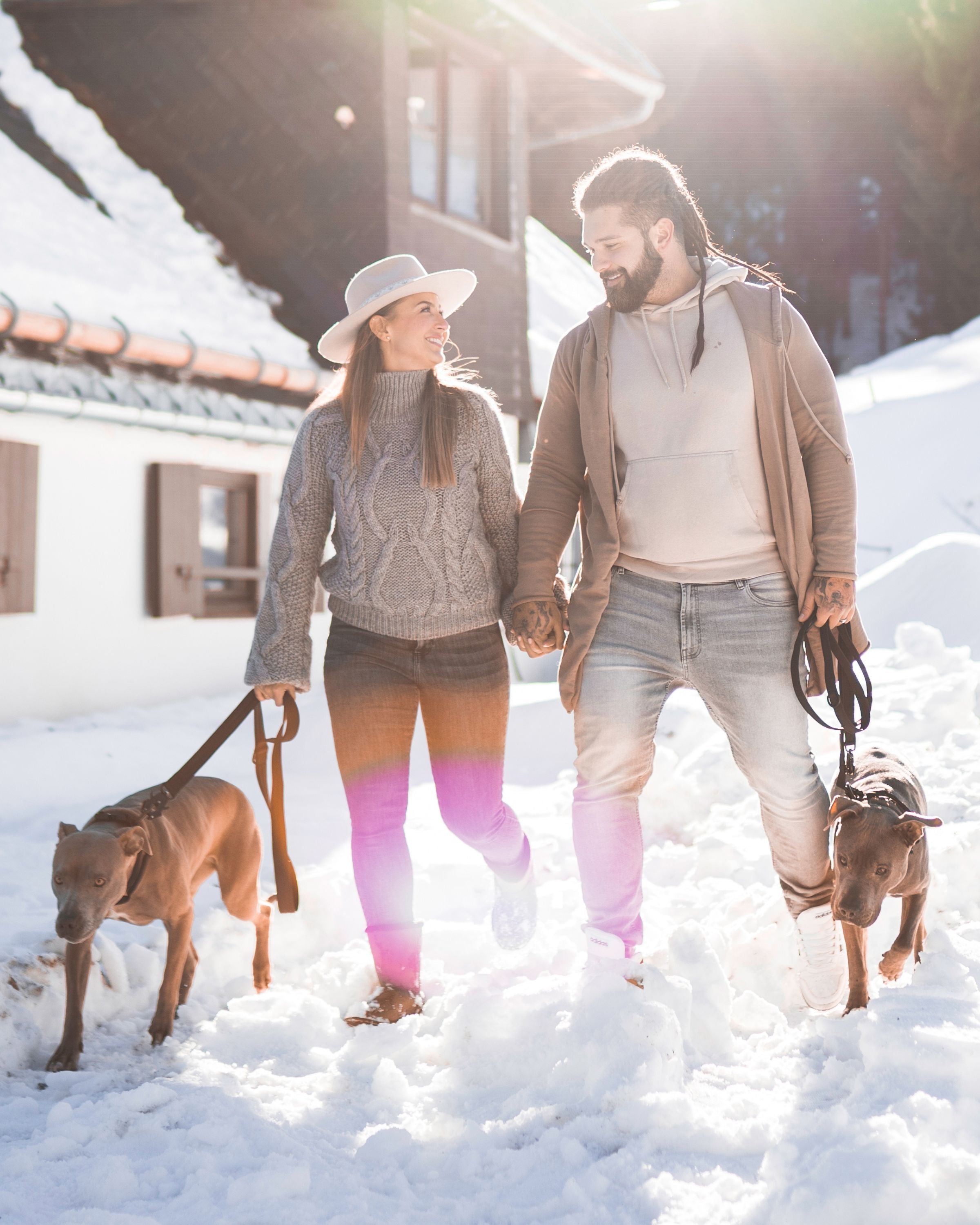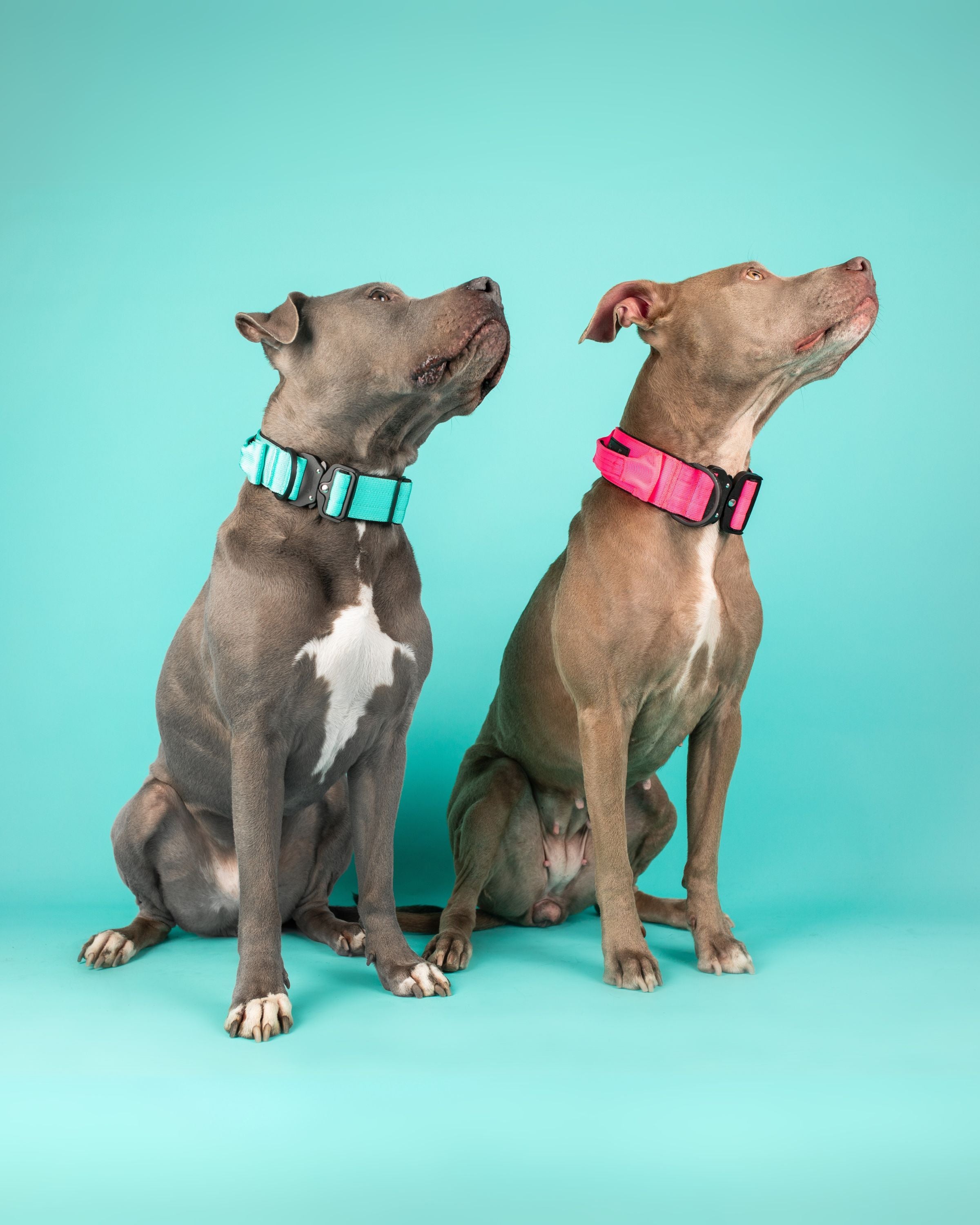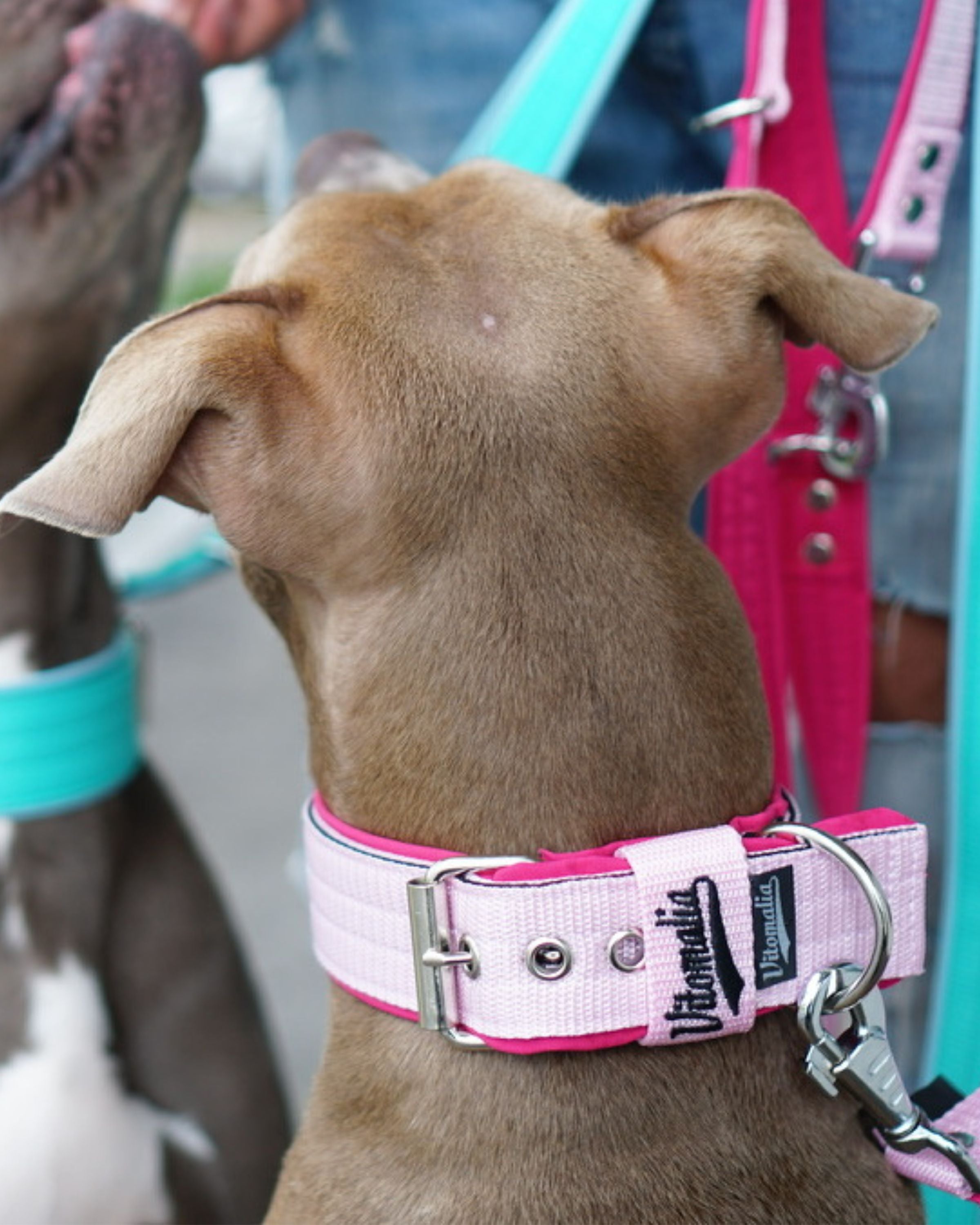 In July 2016, we moved the centre of our lives to Switzerland - together with Vito and Amalia. A courageous step that changed many things. But one thing remained the same: the daily challenges with two special dogs. We looked for functional accessories that combined safety, comfort and quality. But we found nothing. Our dogs with short, sensitive coats in particular suffered from classic collars. Pressure points, skin irritation, material failure. So we started sewing them ourselves. Our first idea was a wide Collar with a protruding, soft inner lining - to protect the sensitive neck. Without realising that this detail would become Vitomalia's trademark. What started out as a solution for our dogs became the design standard - to this day.