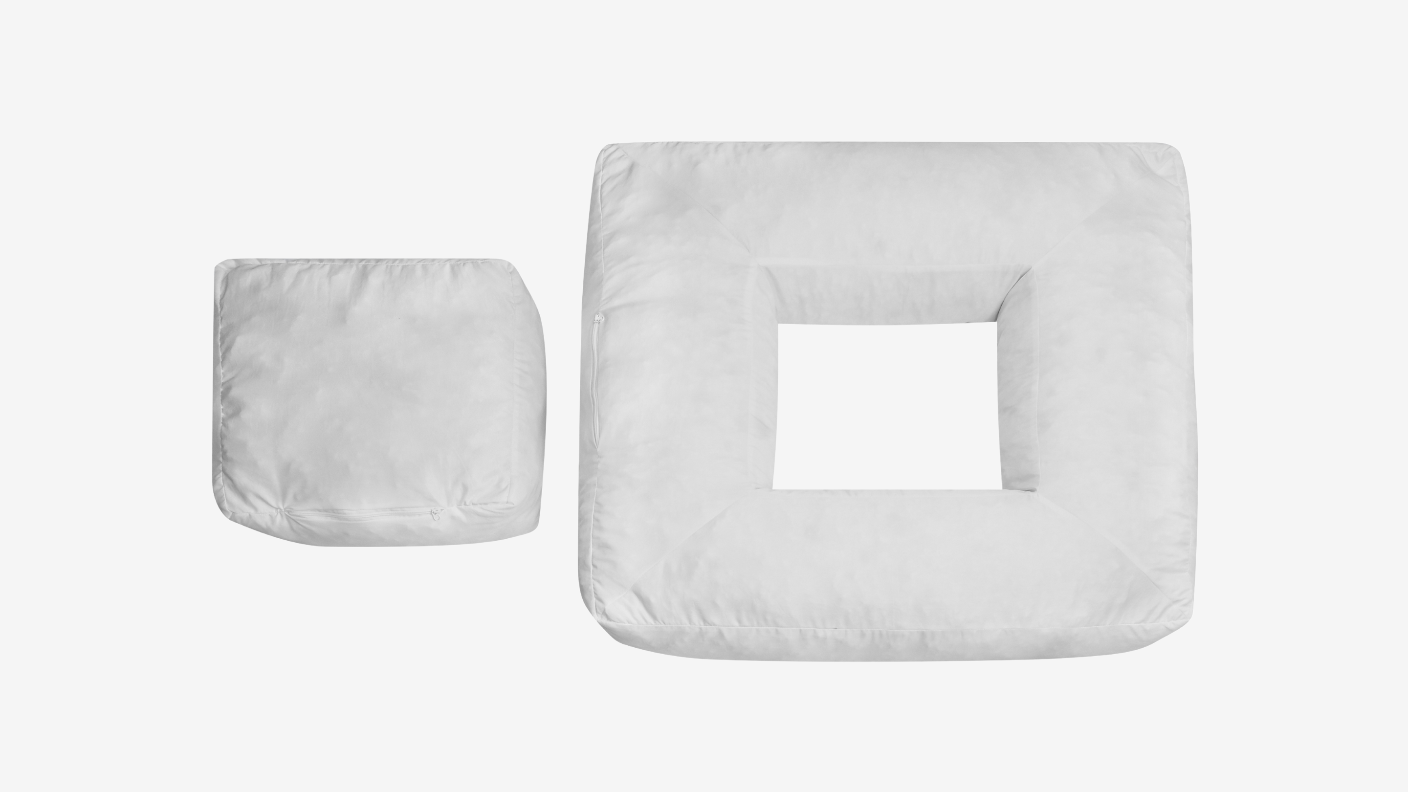 The cushion is ergonomic and ideal for everyday comfort. The donut with integrated mattress is orthopaedic and perfect for dogs with joint problems. Comparison page pillow vs. donut -