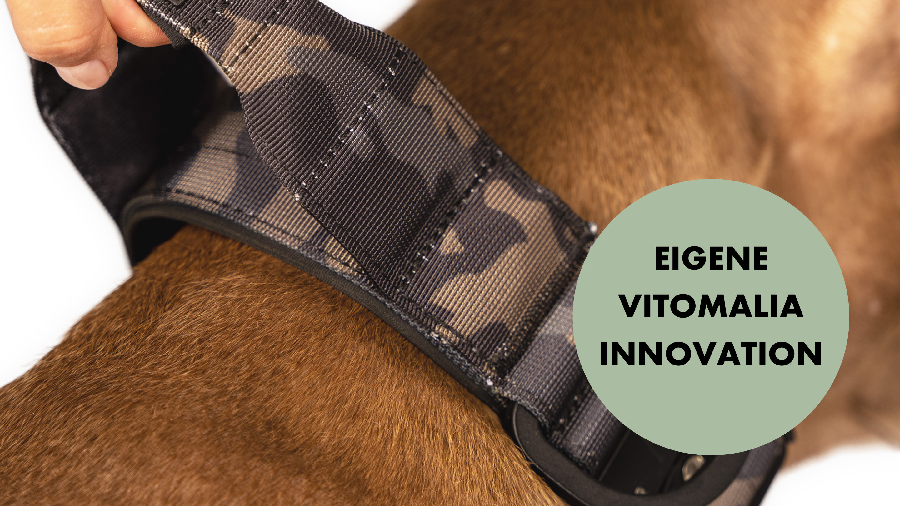 TheExtreme Edition" Dog Collar in camouflage from Vitomalia is specially designed for dogs that love adventure and enjoy being out and about in nature. Made from high-quality, hard-wearing nylon, this Collar offers maximum protection and safety for your dog - whether on hikes, during training or on daily walks.