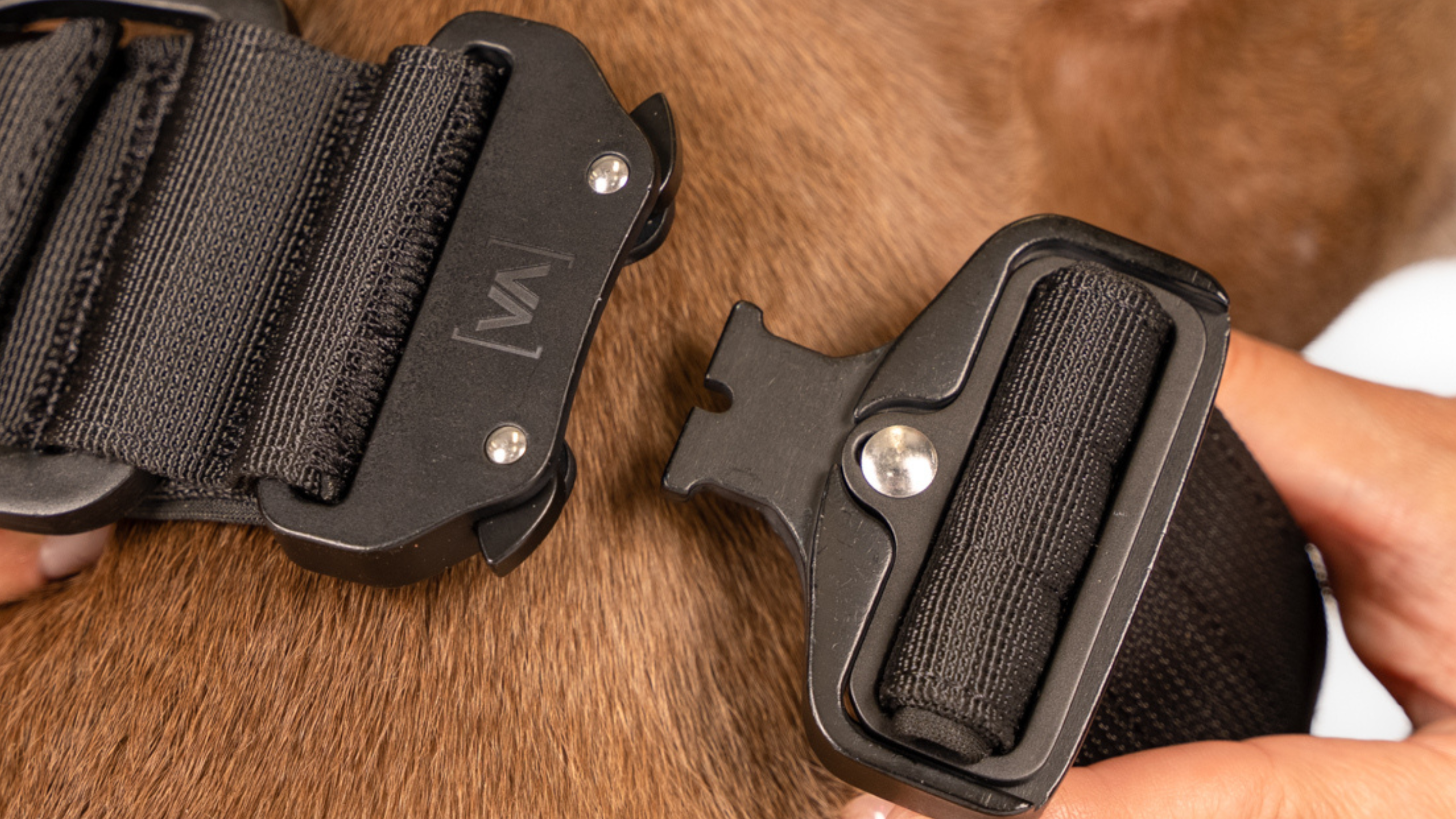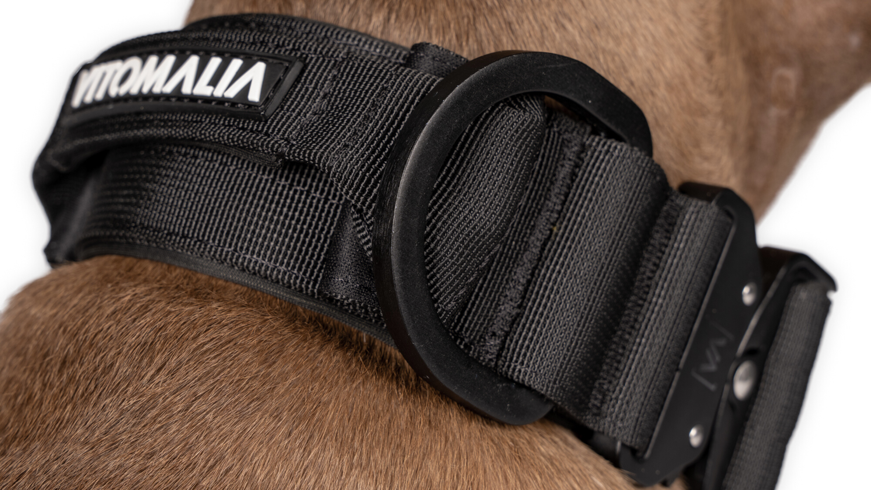 The buckle of the collar is made of hard aluminium, which ensures maximum stability. All other metal parts, such as D-rings and carabiners, are made of extra-thick anodised stainless steel, which was specially manufactured for Vitomalia. This material offers maximum durability and is resistant to rust and wear so that the Collar can withstand even the toughest conditions.