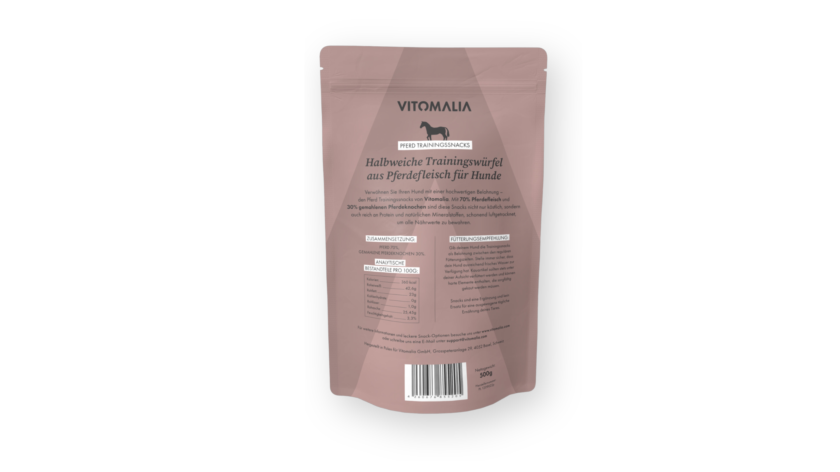 Soft, bite-sized cubes that are quickly eaten. They don't crumble and are barely greasy - ideal for Dog Walking Bags, dummies or for rewarding directly from the hand.