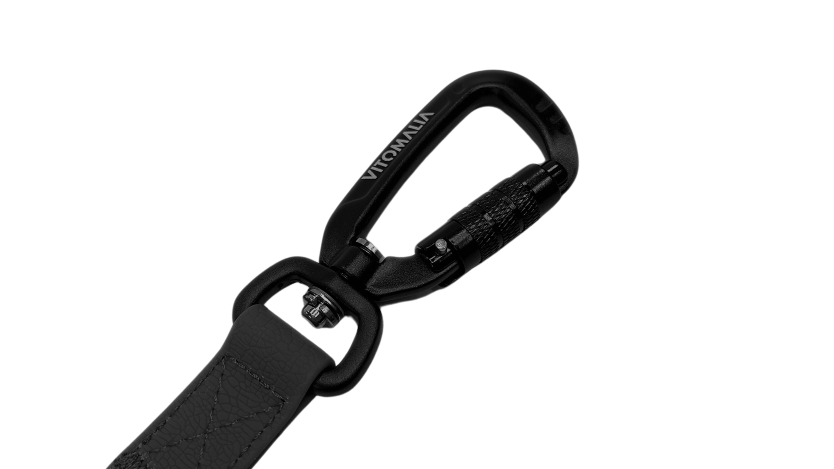 The high-quality safety carabiner made of hard aluminium has a double locking mechanism that only opens when both catches are activated simultaneously - for maximum safety. With a breaking load of 600 kg, it is also ideal for large and strong dogs.