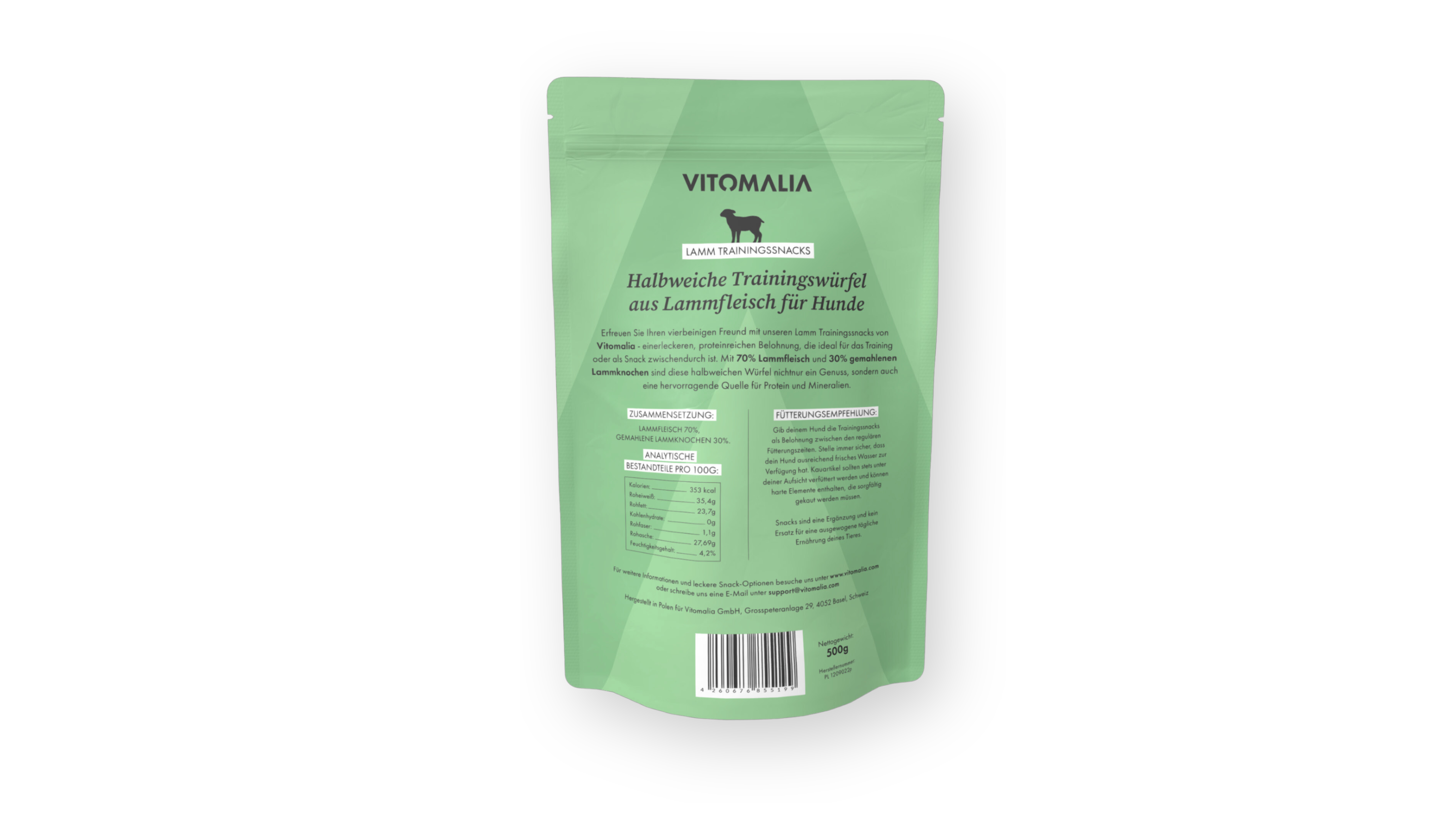 Snacks de entrenamiento Vitomalia se han desarrollado especialmente para el adiestramiento canino: pequeños cubos blandos que su perro come rápidamente y cuyo intenso aroma aumenta inmediatamente la atención: perfectos para la retirada, el adiestramiento con clicker y las recompensas estructuradas en la vida cotidiana.