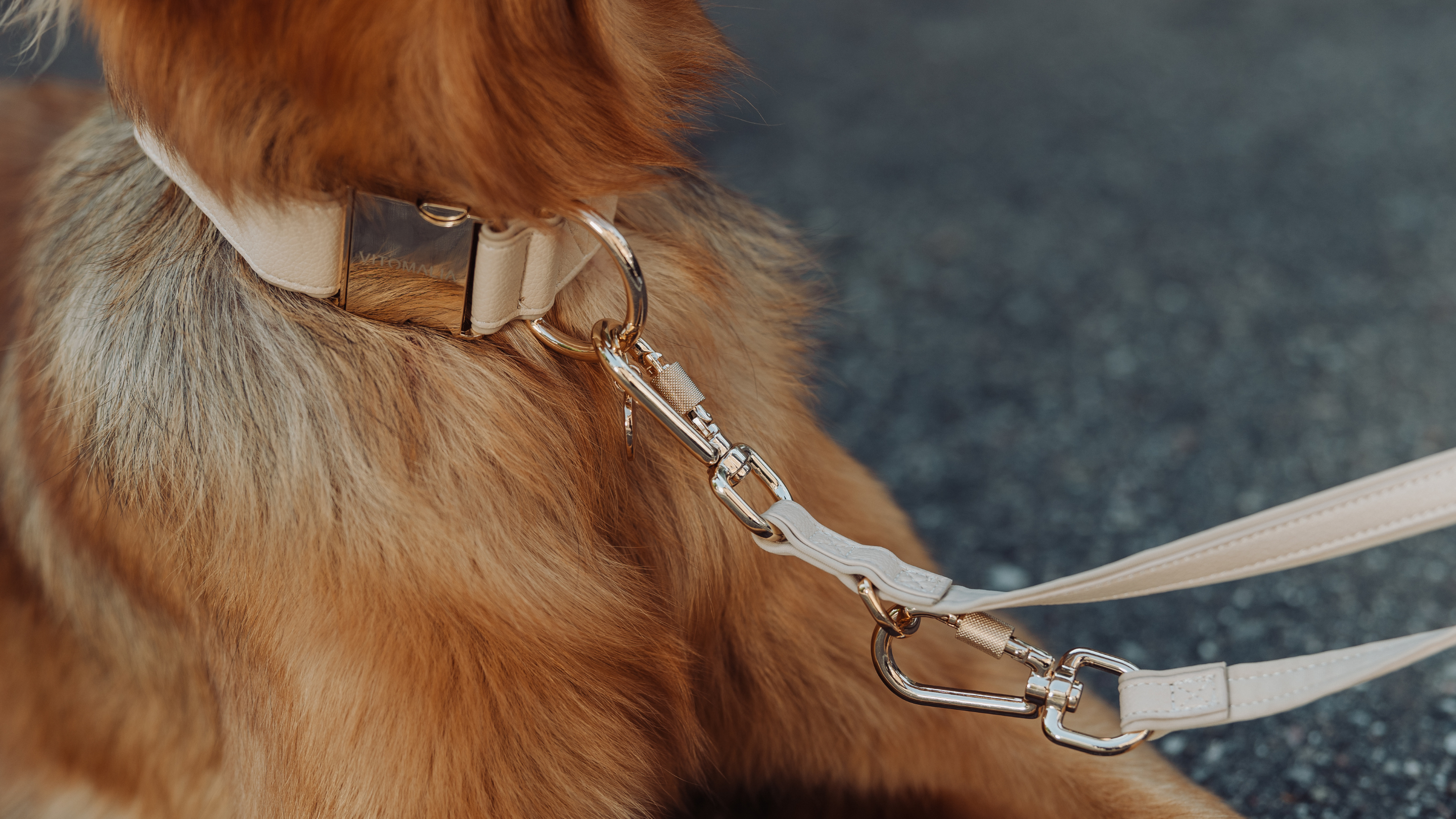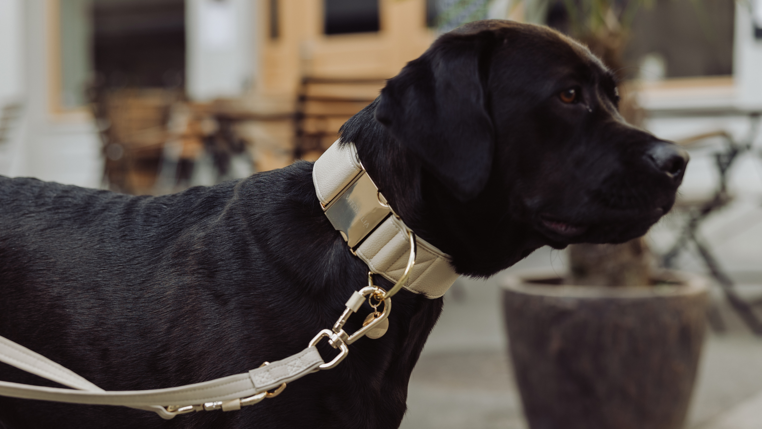 Correa ajustable de lujo para perro Piñatex de piel de piña sostenible en color beige