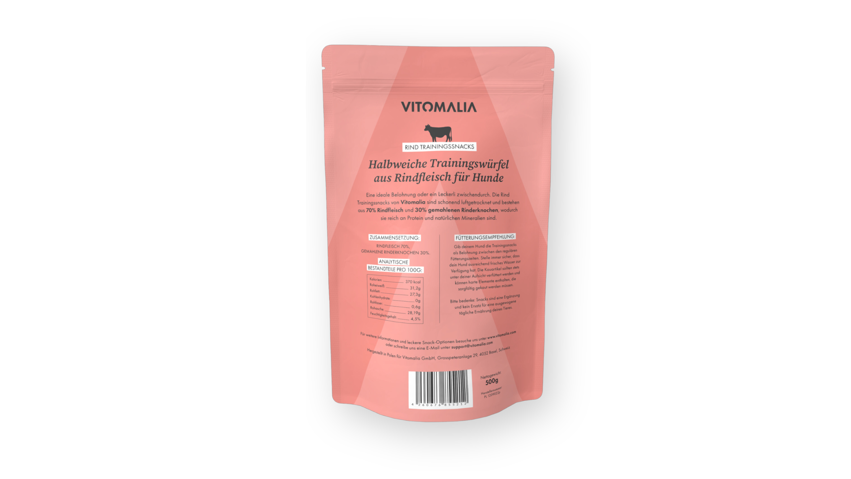 Snacks de entrenamiento Vitomalia se han desarrollado especialmente para el adiestramiento canino: pequeños cubos blandos que su perro come rápidamente y cuyo intenso aroma aumenta inmediatamente la atención: perfectos para la retirada, el adiestramiento con clicker y las recompensas estructuradas en la vida cotidiana.