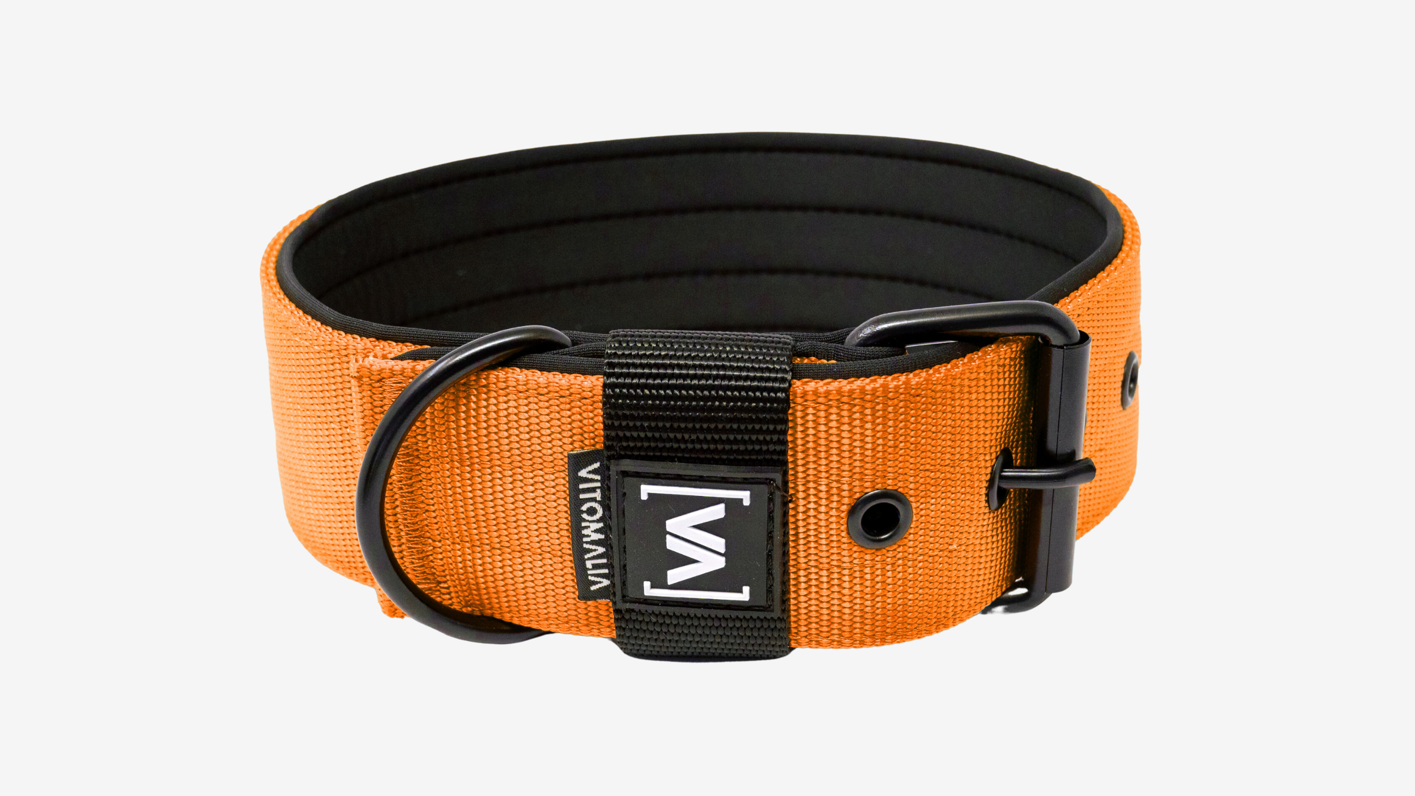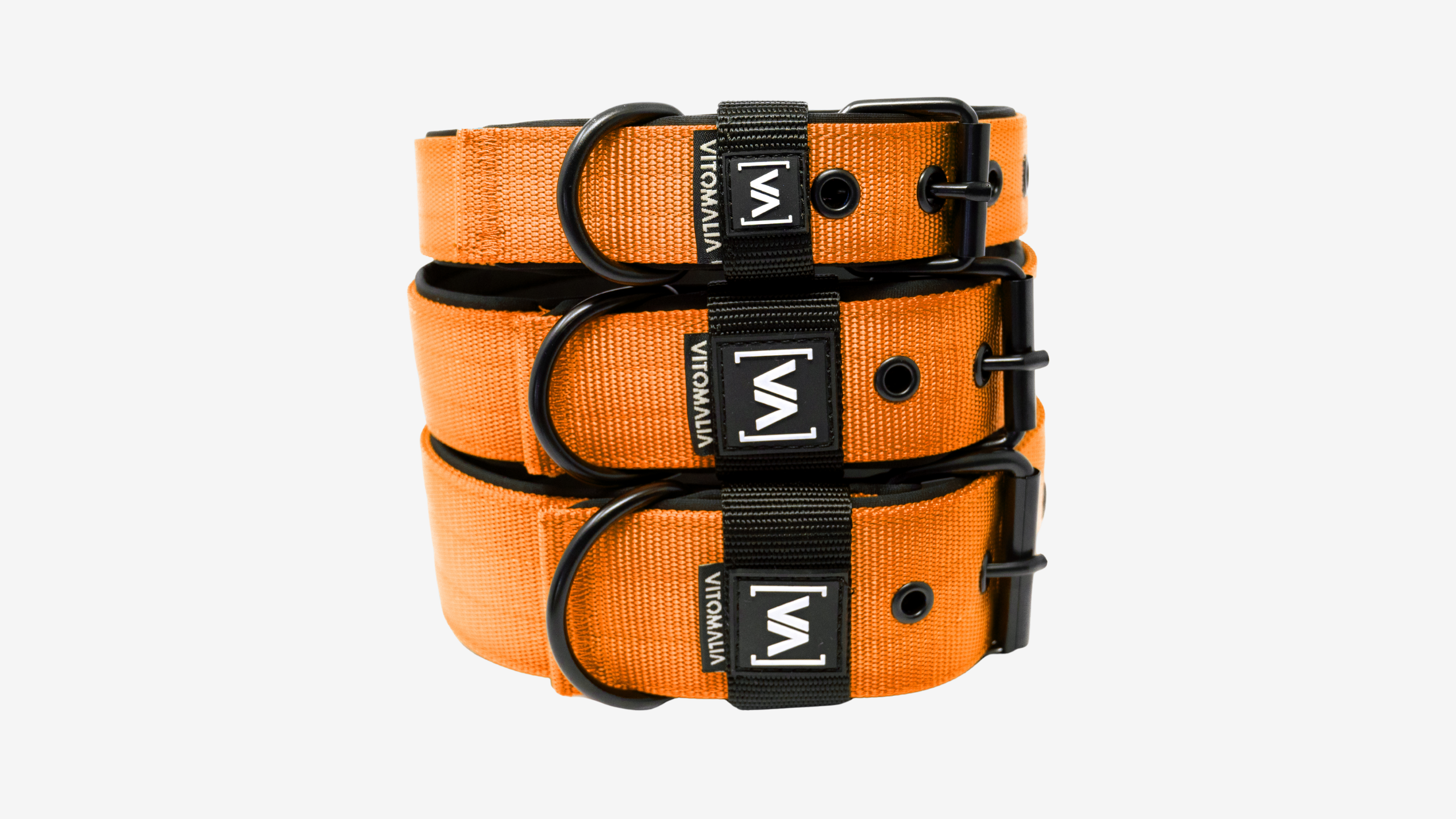 Das Classic Nero Edition Orange Set von Vitomalia vereint auffälliges Design mit langlebiger Qualität für aktive Hunde und stilbewusste Halter. Dieses Set, bestehend aus einem markanten Halsband und einer 2,2 Meter langen, dreifach verstellbaren Leine in lebendigem Orange, eignet sich perfekt für den täglichen Einsatz und Outdoor-Abenteuer.
