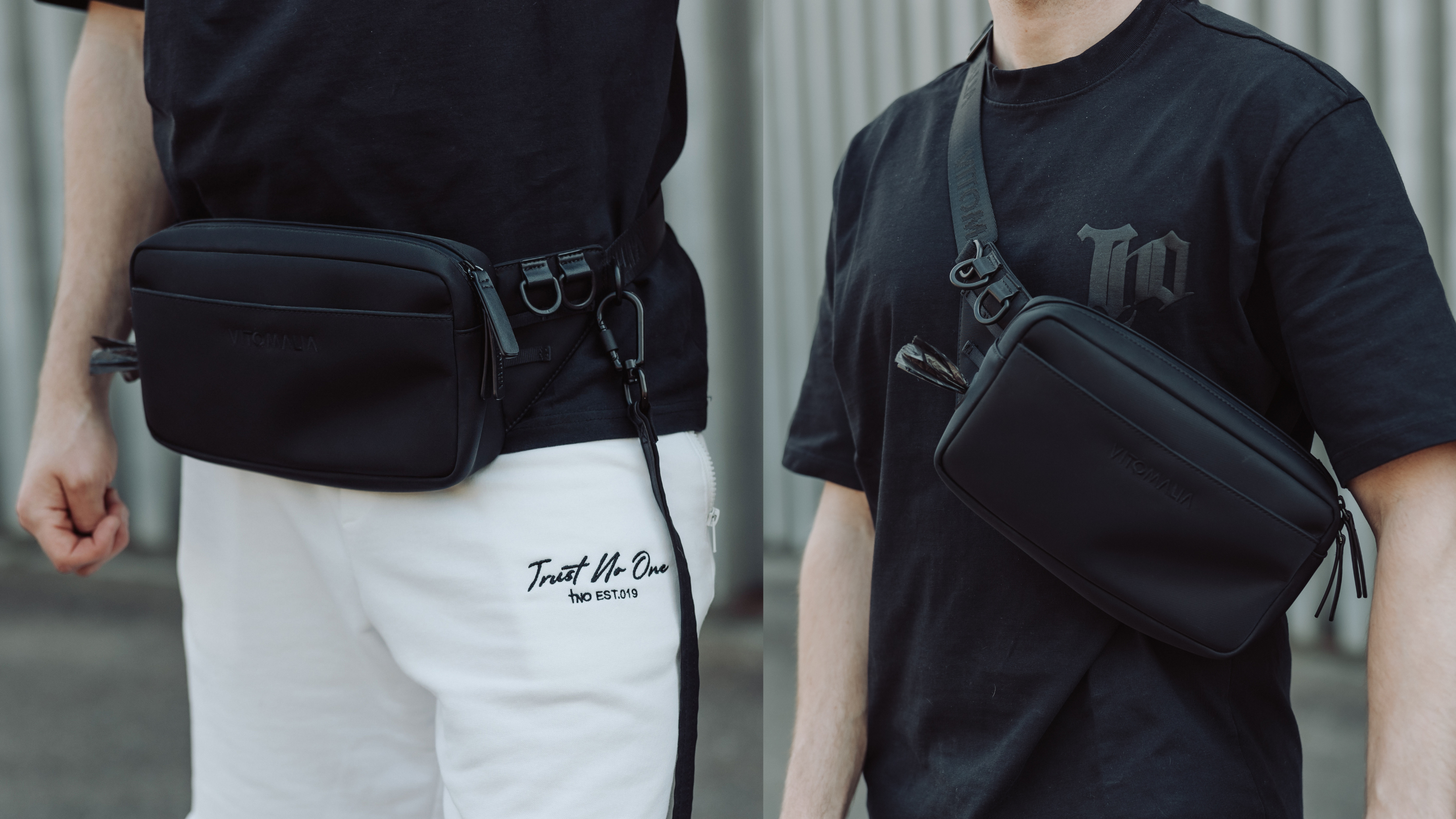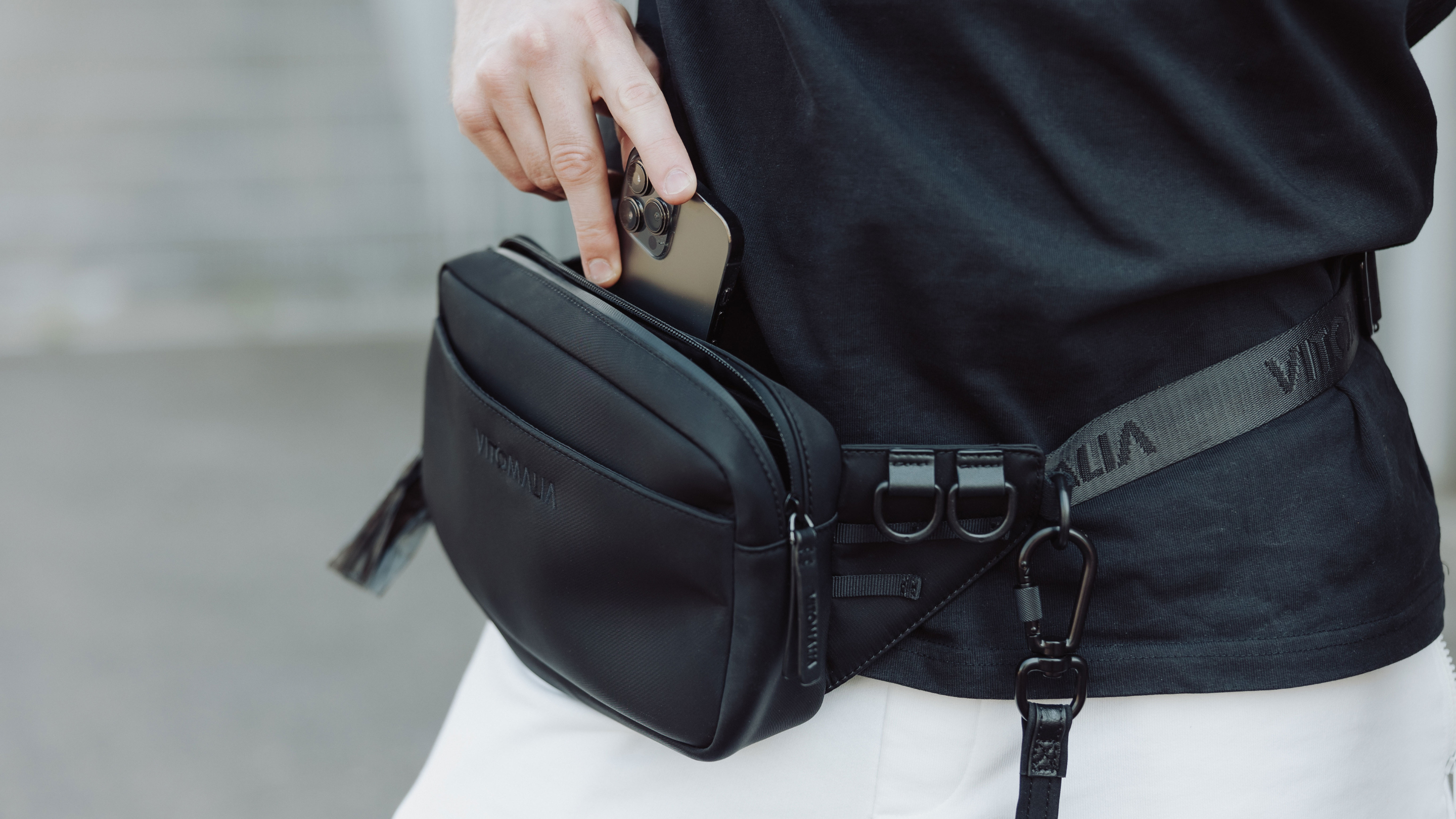 Mit ca. 25 × 15 × 6 cm bietet die Tasche kompakten, aber durchdachten Stauraum. Der Gurt ist von etwa 60 bis 140 cm verstellbar und erlaubt das Tragen als Bauchtasche oder Crossbody.